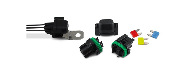 - 可适配两个有源保险丝。此密封微型保险丝座还可以配备两根备用保险丝。